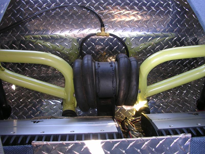 2600# Firestone bags with a cantilever setup over the rear bridge.