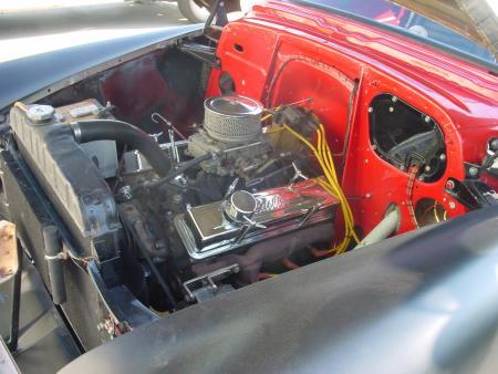 350/350, Cadillac air cleaner, vintage finned Edelbrock valve covers, and flame-thrower exhaust. ~SOLD~