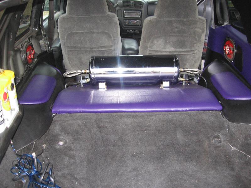 custom wrapped rear panels, black and purple vinyl; custom fiberglass box and custom battery rack w/dual optimas