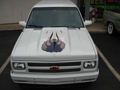 Painted shaved everything mirrors, Goodmark Cowl hood, billet grille, H4 headlight conv.APC euro tails, and clear markers.