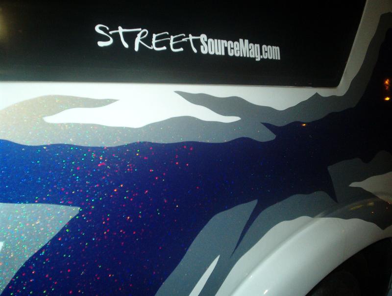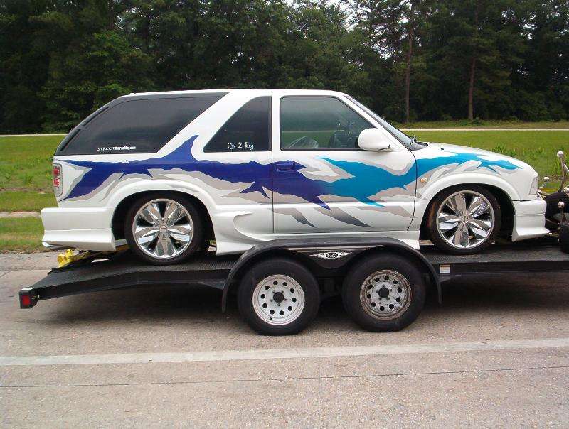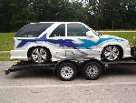 White with Silver, Blue & Purple Graphics (Paint), Clearcoated with prizmitic on graphics,Clear Altezza''''s all around, Flowmaster Exhaust,Fullsize Chevy Bumper....