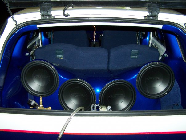 Alpine head unit, ARC Audio XEQ 7 band eq, KS300.4, KS1000.1, 3 sets ARC6000 components, 4 ARC series ARC12D4 subs, 200 amp alternator, kinetic battery in console