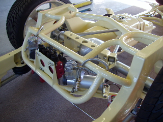 S10 chassis rails, tubing crossmembers, Tubular control arms, KP Components rear suspension with Slam Specialties all the way around!