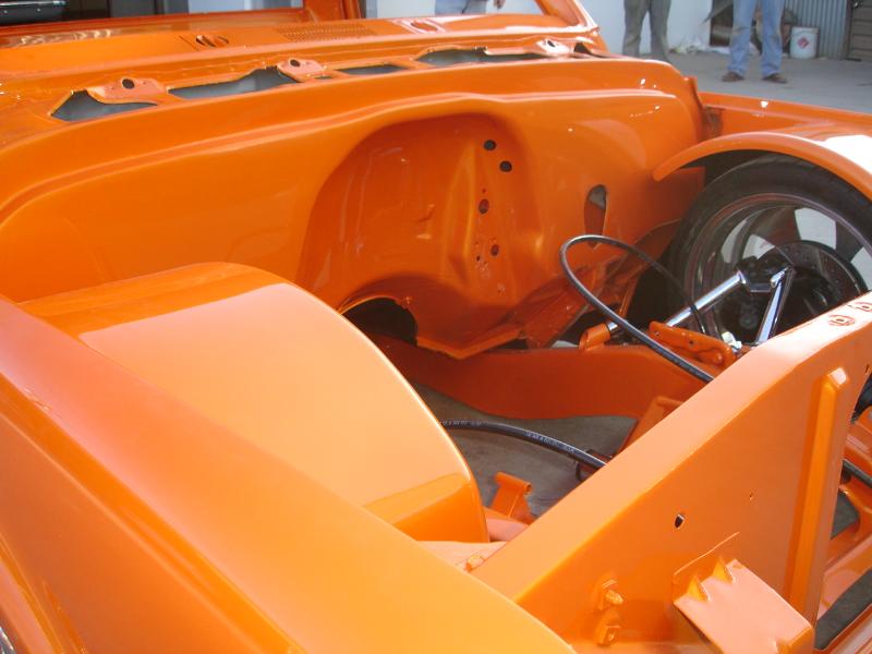 raised front crossmember 2.5 reworked steering made motor and tranny mounst for big block with 100% stock floor. art morrison notch custom 4 link and bag mounts pro chrome shocks rides like a cadillac all work by custom shop porterville ca