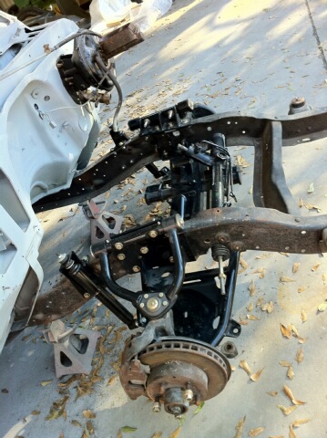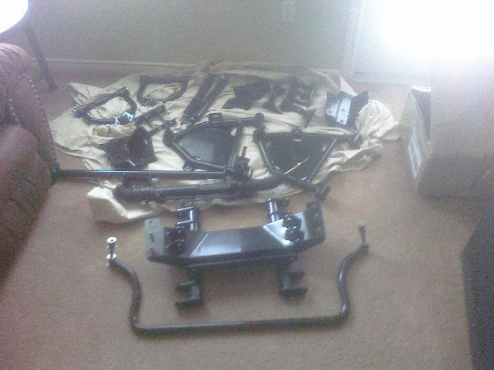 so far i have the suicidedoors.com P-51 crossmember and control arms for the front. also picked up the accuair system for it.