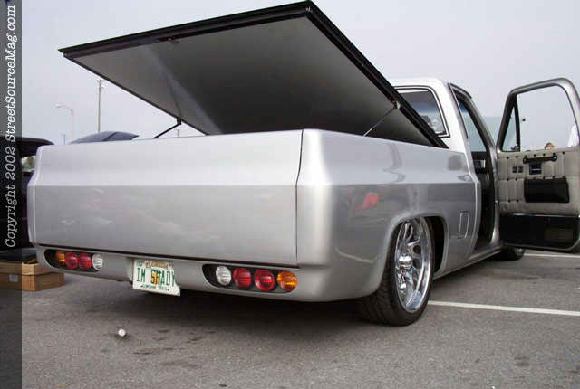 THE TRUCK IS FINALLY BACK UNDER THE KNIFE AND WILL BE TOTALLY DIFFERENT WHEN ITS DONE. PICTURES WILL BE POSTED AS WE PROGRESS. So far the new rear suspension and some front mods have been done. The interior of the bed is being re-skinned with polished diamond plate. The front end will eventually be Z'd. The interior is getting some paint and a new tv and dvd player. Also, the gas doors will be shaved now that the fuel cell is in and all of the paint will be updated(probably just freshen up the same paint scheme)