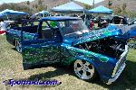 shaved molding, roof seam, door handles, gas filler, tailgate handle, marker lights painted chevy arrival metallic blue with candy green flames and skulls ghosted in in the green
