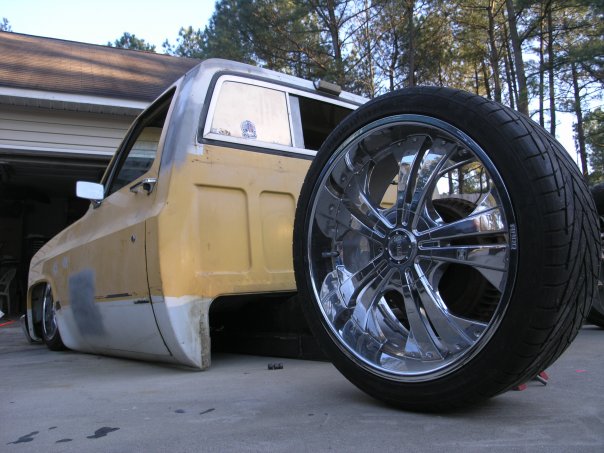 3 piece frame- bolt-on front and rear clips. Front- control arms moved in & 1.5" longer, bags moved in 2" under the frame rail.