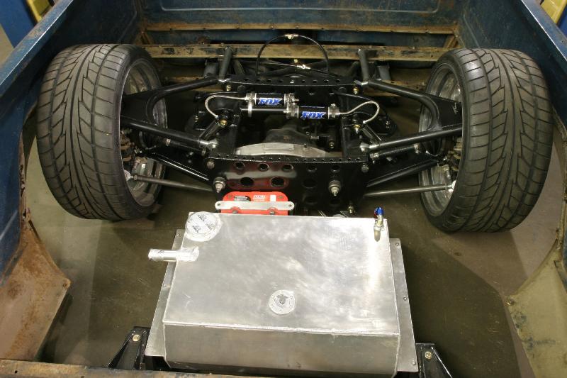 We built the chassis using 2x4-inch.120 wall tubing. The xmembers and ars are 4130 chromoly