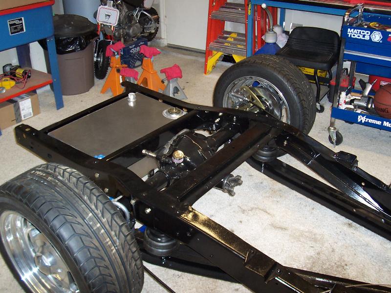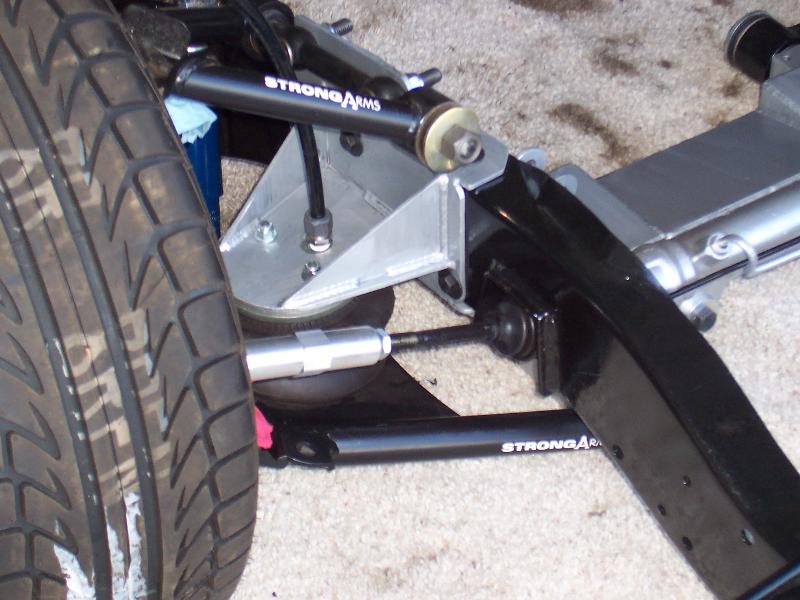 porterbuilt front xmember, mustang rack,ART upper and lower arms, bags, front disc kit, rear bagged with disc brakes,fully built rearend with a 3:73 posi with 5x5 axles, stainless panhard bar, everything stainless hardlines air,fuel,brakes, por-15 frame and xmembers, aluminum fuel cell in rails,1 1/8 front sway bar