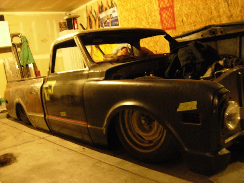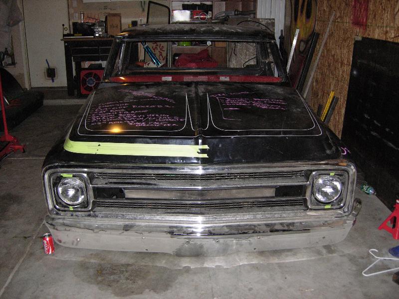 notice hood fits flush with fenders, soon to be switched w/ a 67' front clip