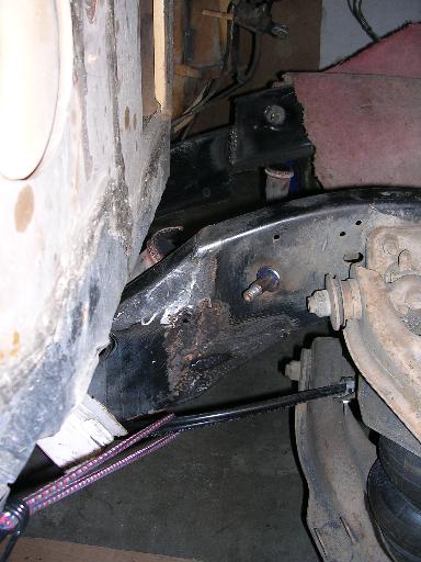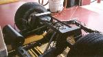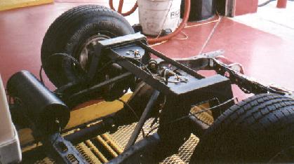 Front: Belltech 3" drop spindles w/ Firestone 2600 bags. Rear: FBI triangulated 4-link, 10" step notch and Firestone bags. 1/2" valves and line. 2 "K" size nitrogen tanks. "Z"ed frame 2.5"