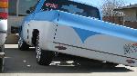 shaved emblems,doors,front side turn signals,rain gutters,door locks,roll pan with custom chevy emblems cut out for lights,crooked license plate in tailgate,shaved stake hole pockets,tinted windows, full phantom grille, gas doors,mirrors, primered