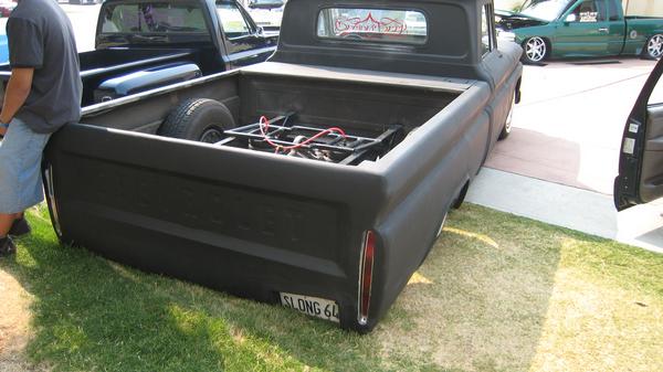 fully shaved,custom bobbed bed(slong bed), cadillac tail lights, enclosed gas tank,primored black