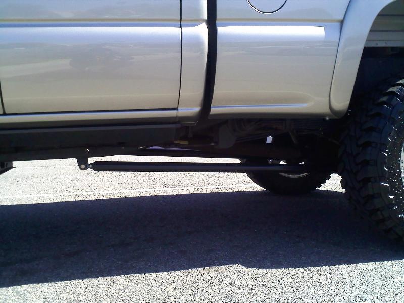 6 inch rcd, ladder bars with 3/4 heims, helper baggs, lots of black spray paint:) just added on board air for the tow baggs and train horns