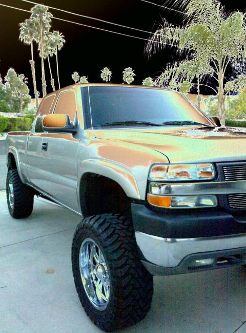stock, debadged emblems, billet grillz, billet bow tie, amp steps, darks ass 3% TINT 50% WINDSHIELD, roll lock bed cover
