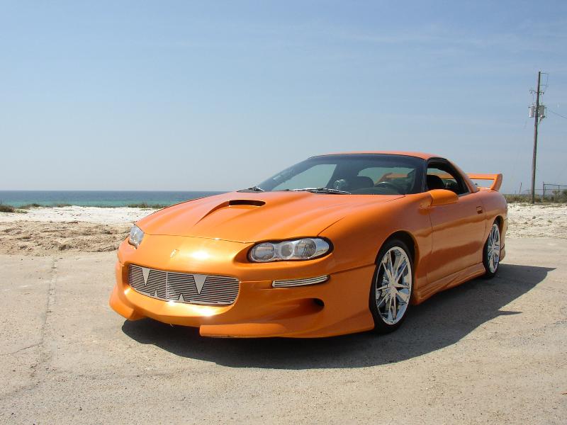 xennon front clip, vizage sides and rear shaved body line and antenna, carbonfiber ss hood , commando wing, black halo headlights, altessa tail lights, orange led light kit, custom diamond plate grille, custom billet blinker grilles, lambo doors