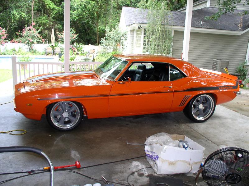 Hugger Orange/Yenko Stripes, Endura Front Bumper, Rear Bumperguards, Blacked out rear panel, RS taillights, smoothed firewall, mini tubbed