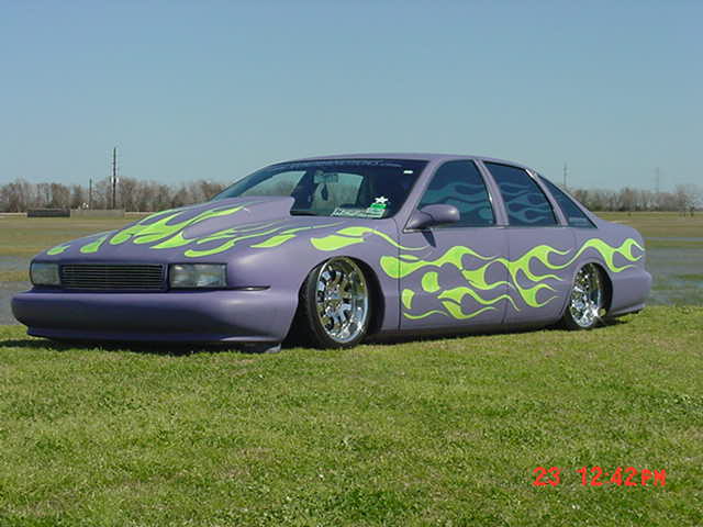 can we say shaveddddd WIHT A CADDY LED AND body work SUICIDE DOORS SHAVED BUMPER AND CORNERS AND PURPLE PAINT