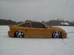 Octane front bumper, molded Street fighter side skirts, Xplozion rear bumper, VIS Bullet Fenders, Dual ram air hood, APC euro projector headlights, Clear corner lights, APC M3 sport mirrors, Custom made eyelids, Shaved door handles, locks, antenna, and taillights, 2 13" LED strips, NSX vents, racer spoiler, flip-flop trunk, custom paint job, ghost flames