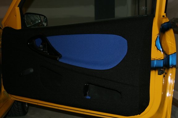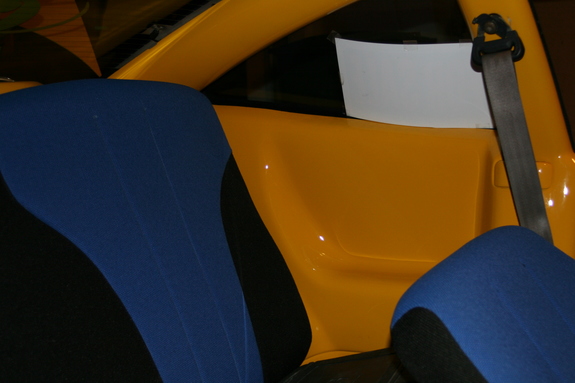 Blue & black tweed, shaved fiberglassed dash with 7 in tv, Colorado custom steering wheel. custom console, fiberglass box under back window