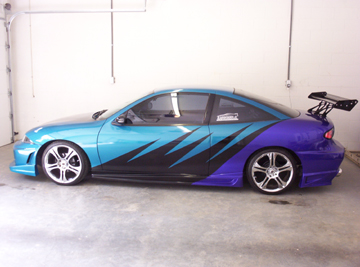 Custom Purple and Black Leather and Tweed, Dash Mat, Faris Gauges, SPEED Steering Wheel, Insane Short Shifter, Sphere Shift Knob,Custom Paint, Strobes, Iron Cross Rear View mirrior