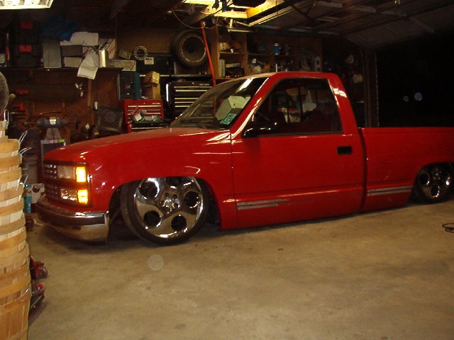 3 gay ass air lifts (one blew the crimp ring off) and one firestone 224, 1/2" GC 250s, 1/2" copper air line, 7 gallon tank and a viair 450