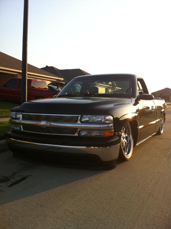 Shaved roll pan, stake pockets, and tailgate, hd hood, tahoe grill, front bumper plastics smoothed and painted, sport mirrors, smoked tailights, bed has been tubbed and notch cover welded in and a bullet bedliner sprayed in. Truck has been repainted factory black