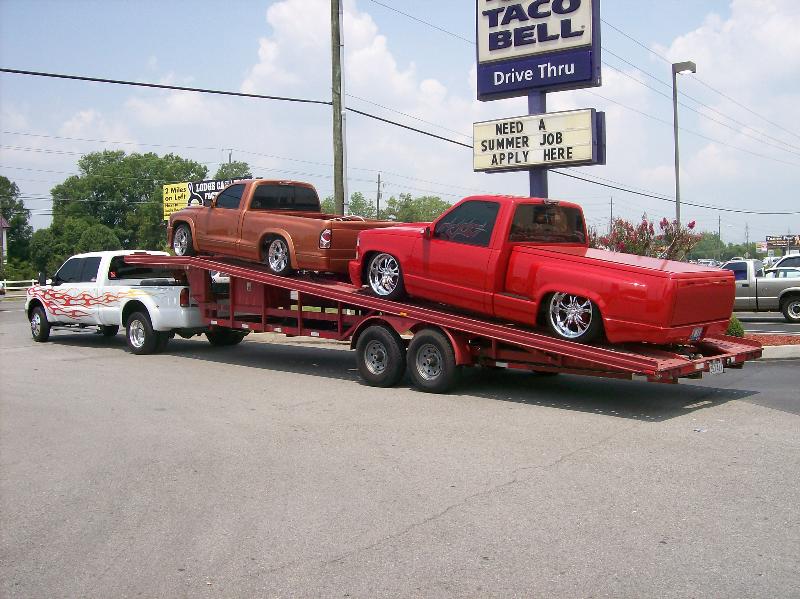 Stepside bed with Shaved rear steps and molded in rollpan from Superior Customs, Shaved door handles, Shaved taillights with LED lights in the tailgate, Shaved and relocated tailgate handle, smooth wipper cowl, custom tinted rear window with tinted flames and bowtie, tinted flames on driver and passenger windows, 30% tint on windshield, Street Scene grill inserts, SS valance w/insert and APC foglights, billet bowtie, billet antena, billet wiper covers, clear parking and corner lights, hyperwhite headlights, Goodmark cowl hood, M3 mirrors w/turn signals, Checkmate fiberglass bedcover w/carpet bedliner, billet bowtie third brake light cover, personal license plate, Street Glow neon lights underneath.