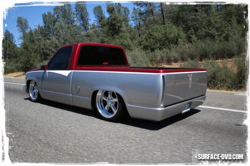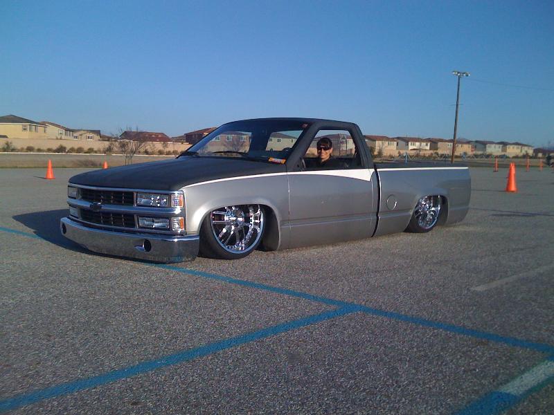 stock floor body drop to the doors on 22's and a 4' gentleman chop. completely shaved with caddy lights.