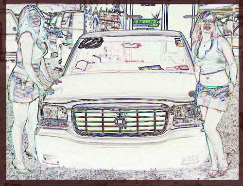 shaved doors ,antenna,mirrors,rain pockets,gas tank,brake lights,3rd brake light,tailgate molded shut.denali full front clip including doors and rear panels.custom hand made steel gas tank located under the bed.graffics in the door jambs sheetmetal bed
