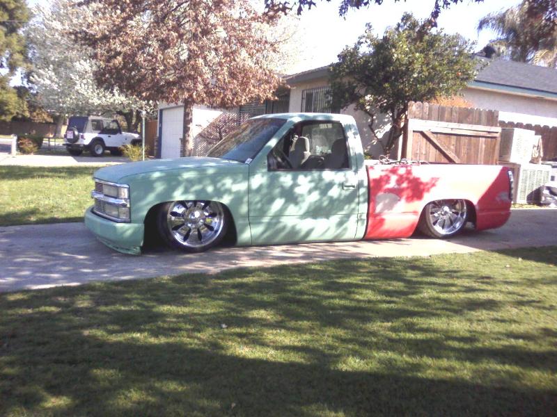 Shaved antenna, cab seems, third brake light, gas door, bed stake holes with a cali combo skin. Smoothie front bumper 4rm avs. The bed was widened 2" in the rear with the floor raised 11 1/4"'s.