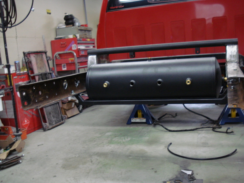 Ekstensive 2-link and cups,slam re-7s,4 1/2 smc,4 3/8 smc,duel viair 480s,8 gallon tank all mounted under the bed