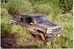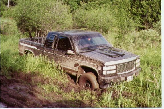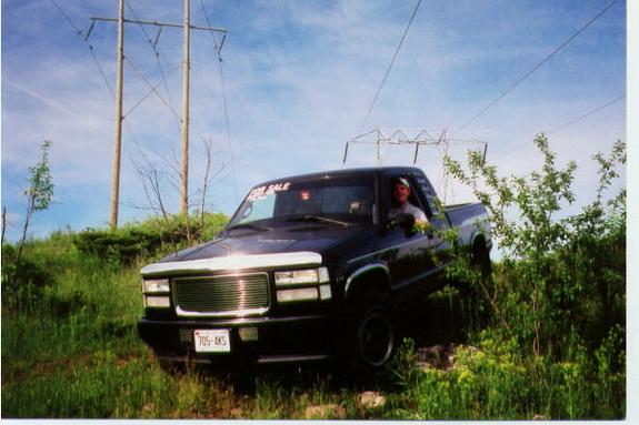 black,gmc grill w/billet insert,smoothed painted diesel bumper with billet,euro tails,smooth steel roll pan,2" lift,285/70R15 on 15x8 rockcrawlers