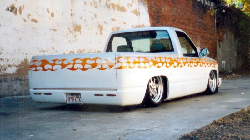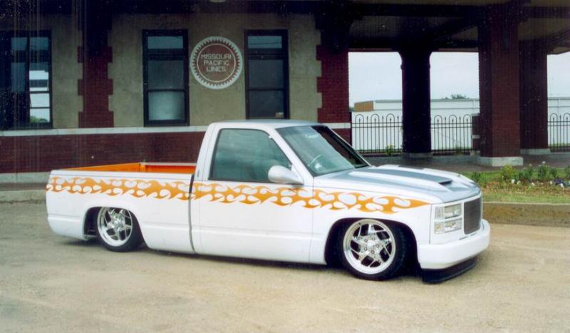 2 TONE shaved door handles,tailgate handle, stake pockets, antenna, taillights,third brakelight,molded steelrollpan,ramair hood, 31 bar billet grill, smoothy bumper, frenched in power antenna, shaved gasdoor.