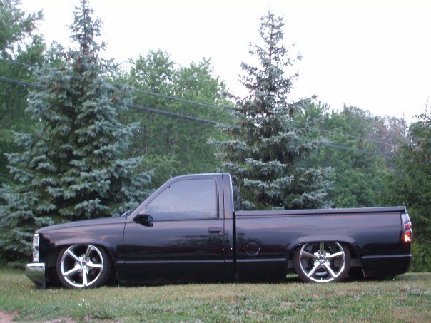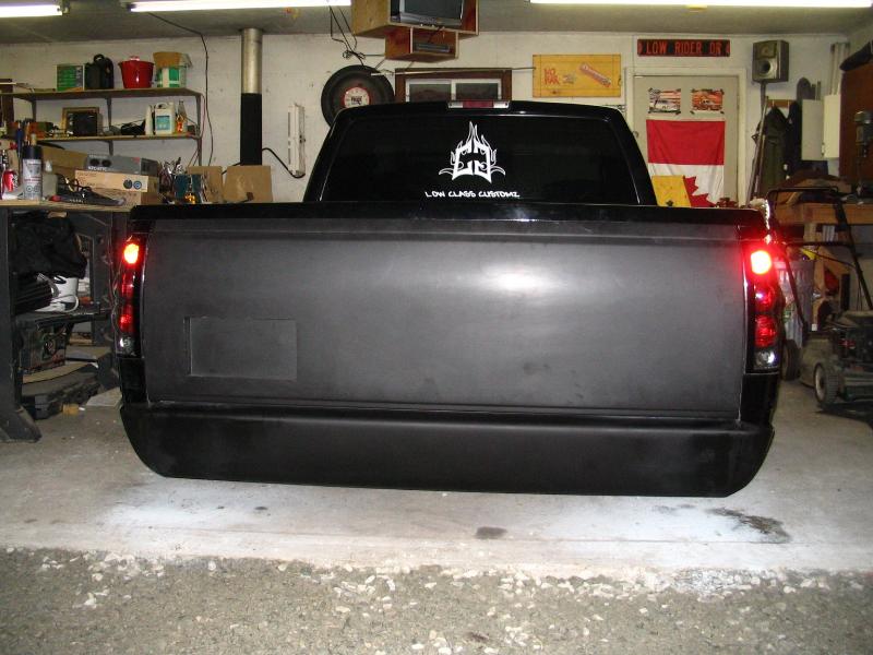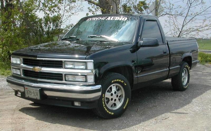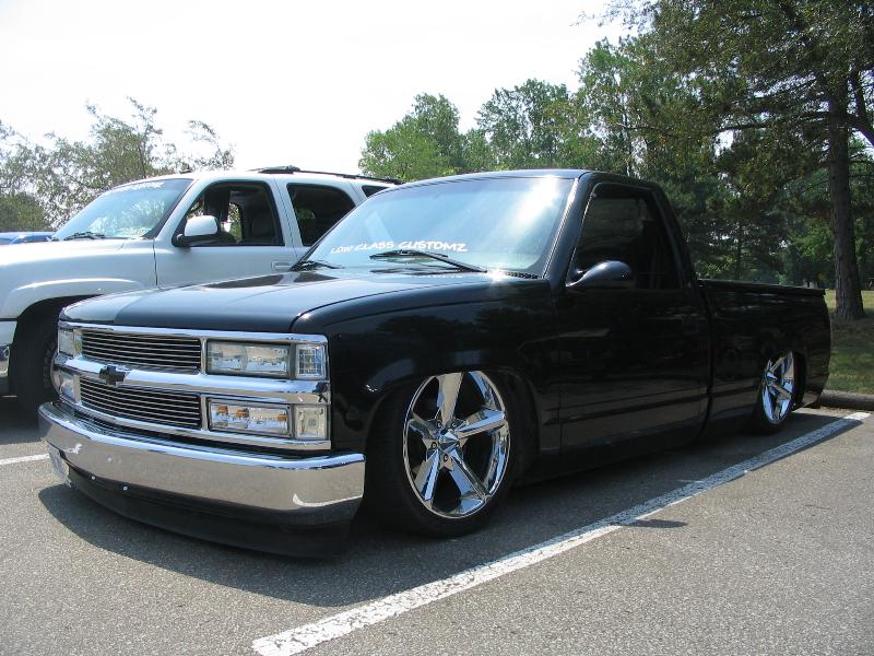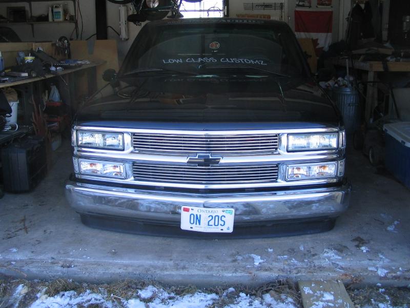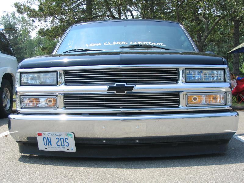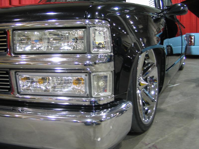 billet grille, smoothie front bumper, fiberglass tonneau cover, street vision mirriors, steel smoothie roll pan, shaved trim, antenna, tailgate & tonneau cover handles. plate frenched in gate. TYC tails, APC headlights and corners.