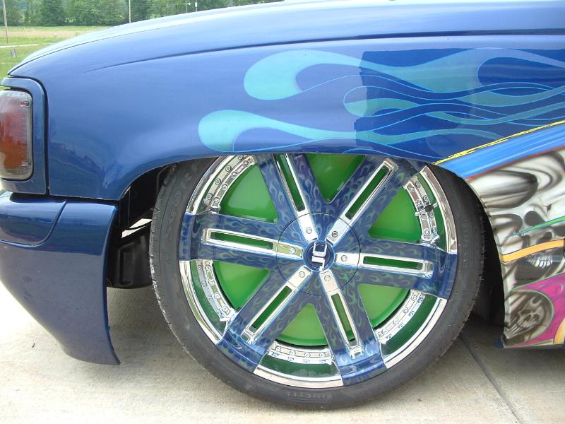 in the chasis shop as we speak getting a new frame. It will sit on 24s all the way around.On 305 35 24s Yes the big ones.