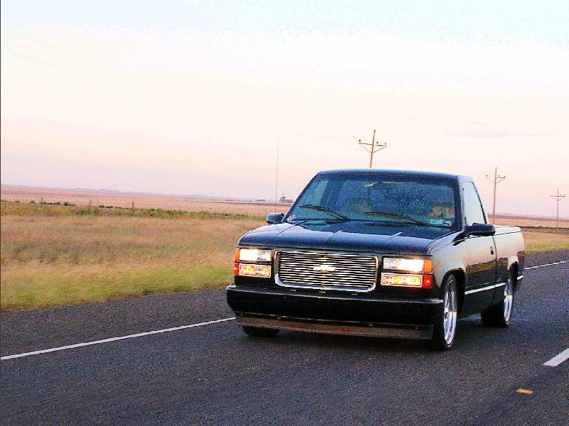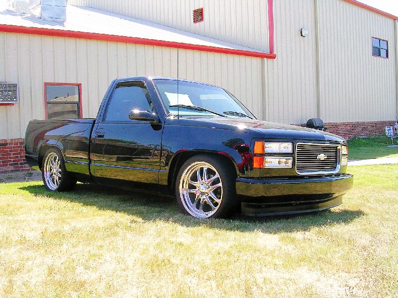 Black, shaved stake pockets tailgate handle, tail lights, GMC grille, flush mount bed cover