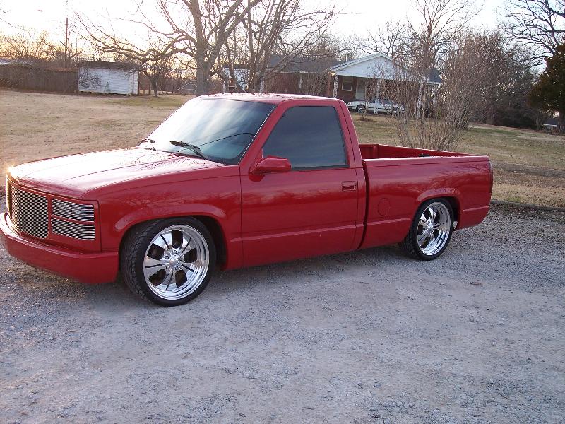 Shaved antenna, 3rd brake light , stake pockets , tailgate , molded roll pan , painted victory red by Joey Harris of Henderson,TN
