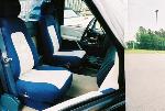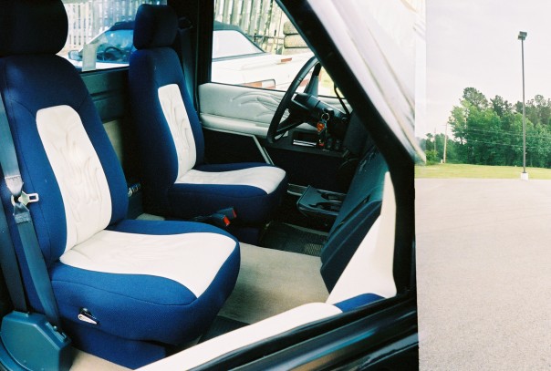 custom seats and door panels with stitched and raised flames (leather & tweed)