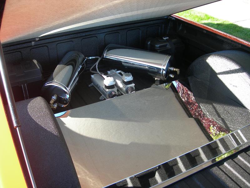 Bagged, 3" Body Drop, Slam bags bags, 1/2" line, 1/2" parker valves, 2 link with a watts link, 2 AZ compressors and 2 chrome airtanks, all connected to a new back half frame, with a caprice rear end with disc brakes
