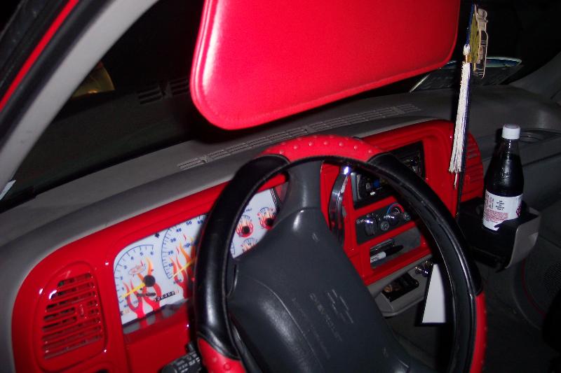 painted dash,NUimage flame gauge,vinyl, billet shifter and knobs .. more paint to come