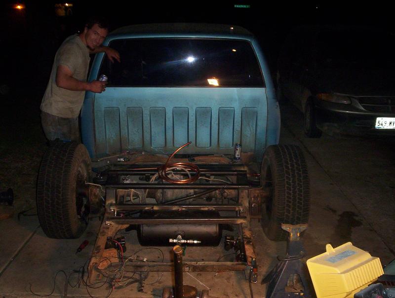 Parts Slam specialties up front firestones in back , 2 link setup 450 1/2 inch 2thomas compressors, nitrogen,and 2" drop spindles