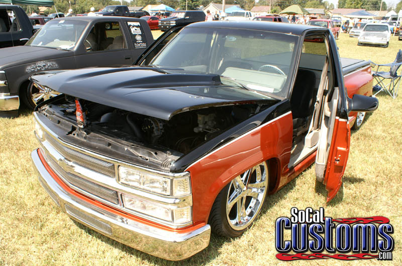 shaved doors, tailgate, stake pockets and antenna. suicide doors and updated grille