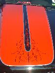 Red, Black, and silver with pinstriping, hood scoop, bed sheet metal and tubbed,