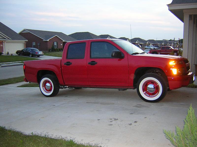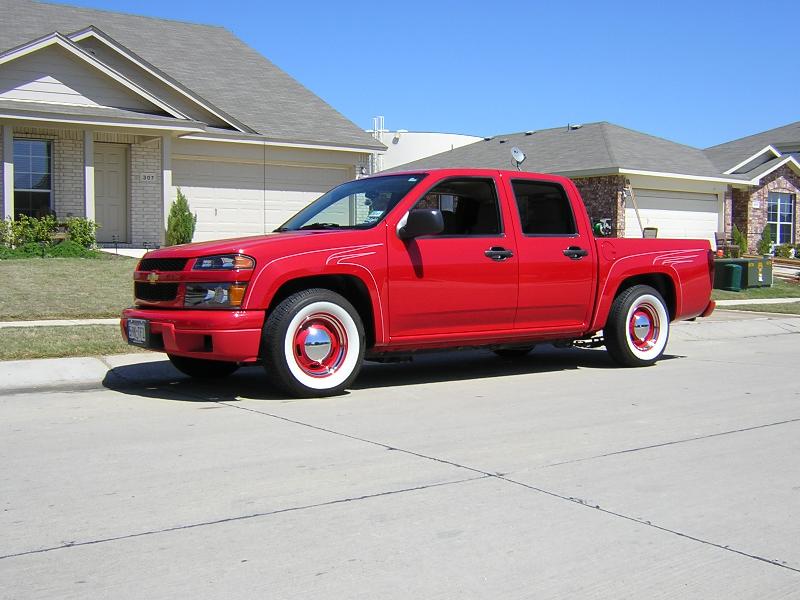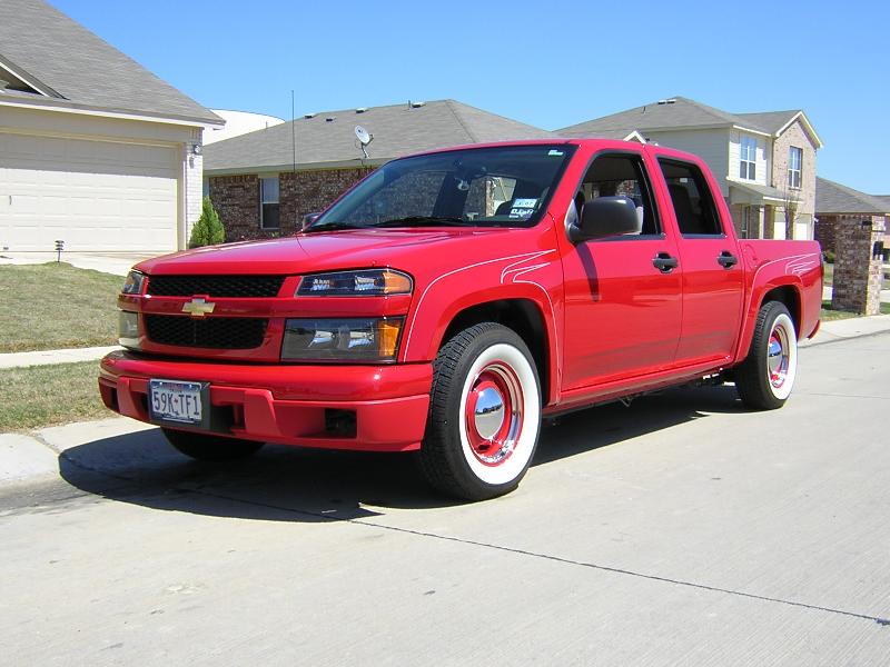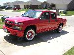 dechromed and painted bumpers, painted grille, zq8 airdam, pinstriping, red rhino lining