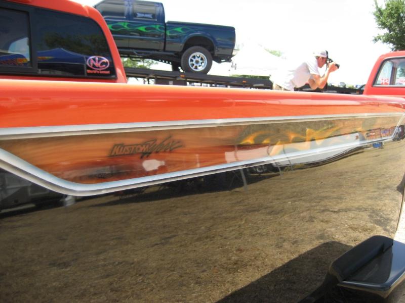 -Hugger Orange and Black two tone w/ chrome stripe separated with wood grain that's on fire