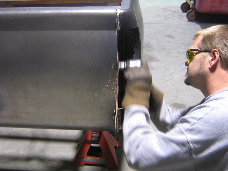 well apparently the shop that bagged it thought that instead of shortening the rear end, they'd cut his bedsides because it was an xtreme people wouldnt see it... now that we are bding it, theres a problem... so we built a new bed from scratch. it also received a grant combo, and sheetmetaled bed, with hagan pop up gas filler door, but it was recently rear ended, and we now have to put a new skin on rebuild the bed, and re sheetmetal it** someone rear ended him a few weeks after picking it up from the shop and instead of just fixing the skin he's decided to redo the sheetmetal in the bed, and do some other things ** stay tuned