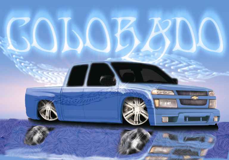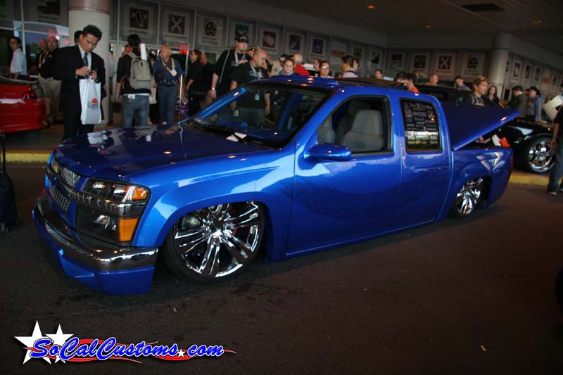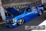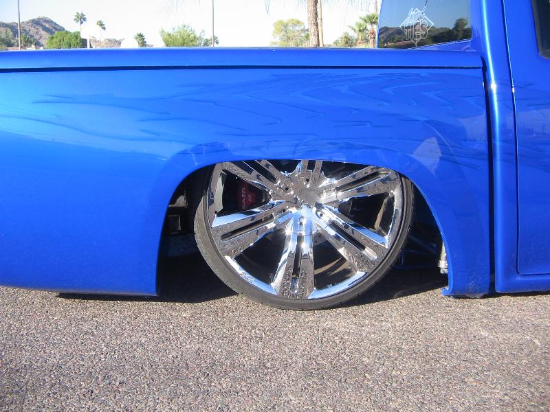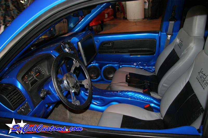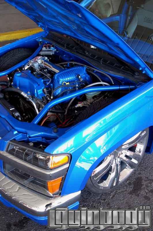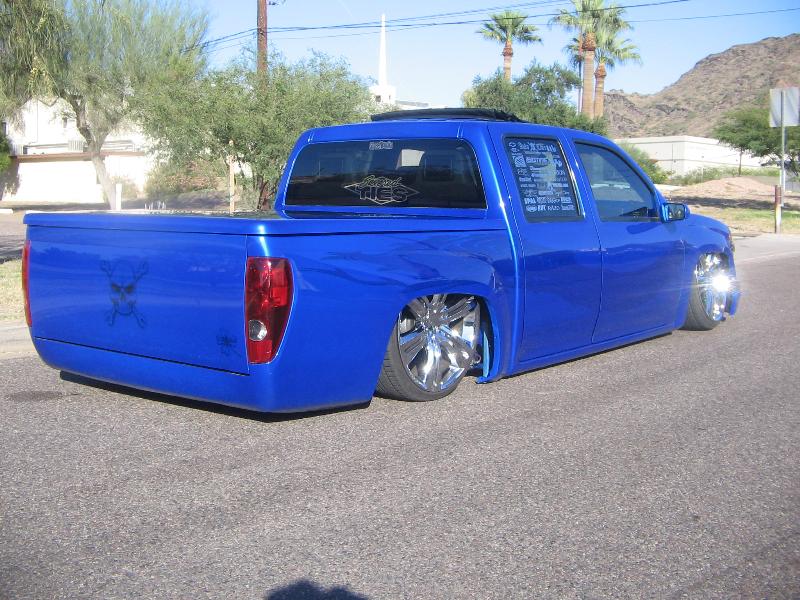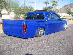 shaved door handles, gas filler, tailgate handle, led 3rd brake light, rollpan, Inalfa power sliding ragtop,HouseOfColor true blue pearl over white base with airbrushed graphics