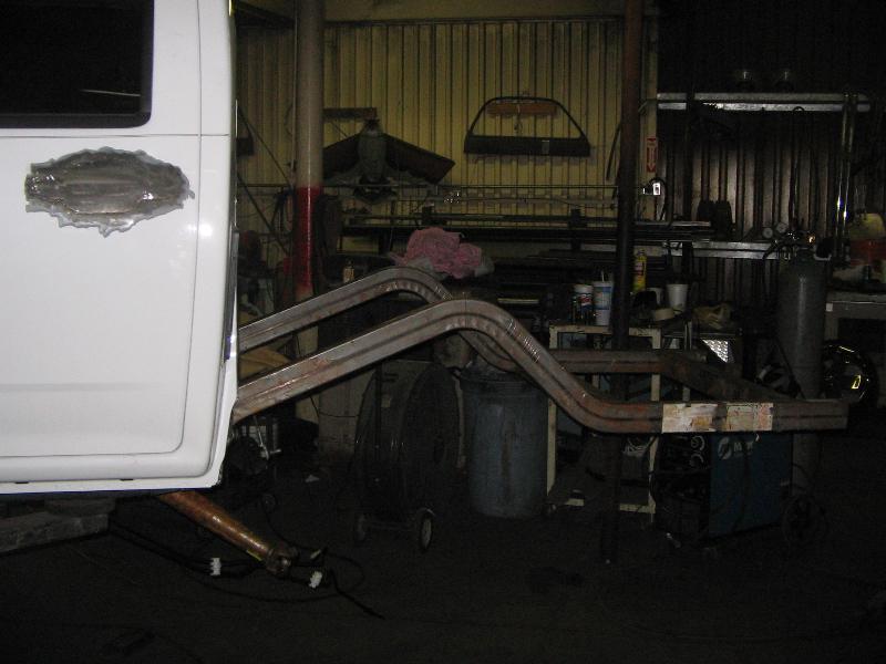 2x3 mandrel bent Art Morrison frame rails in rear narrowed 6”